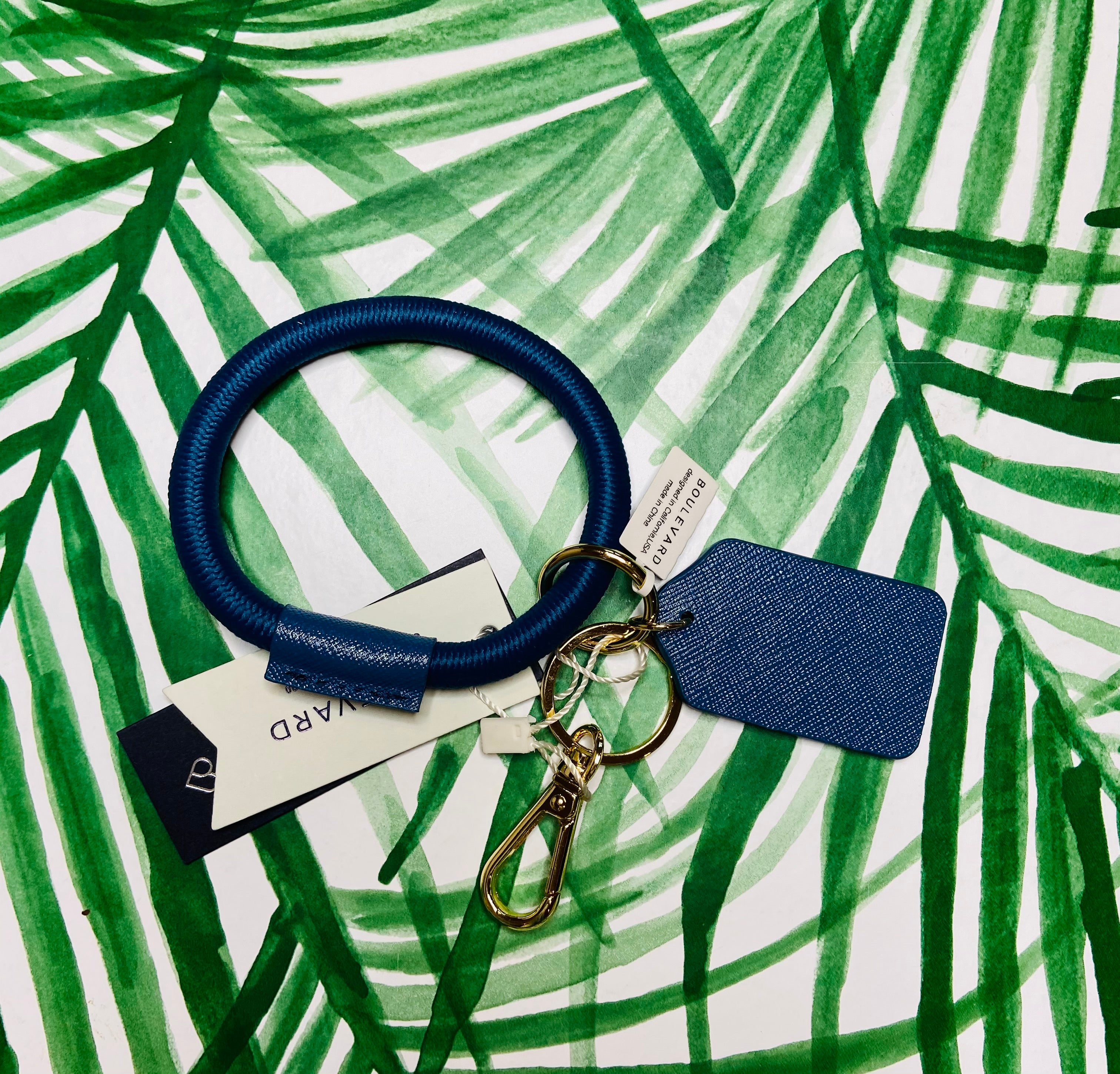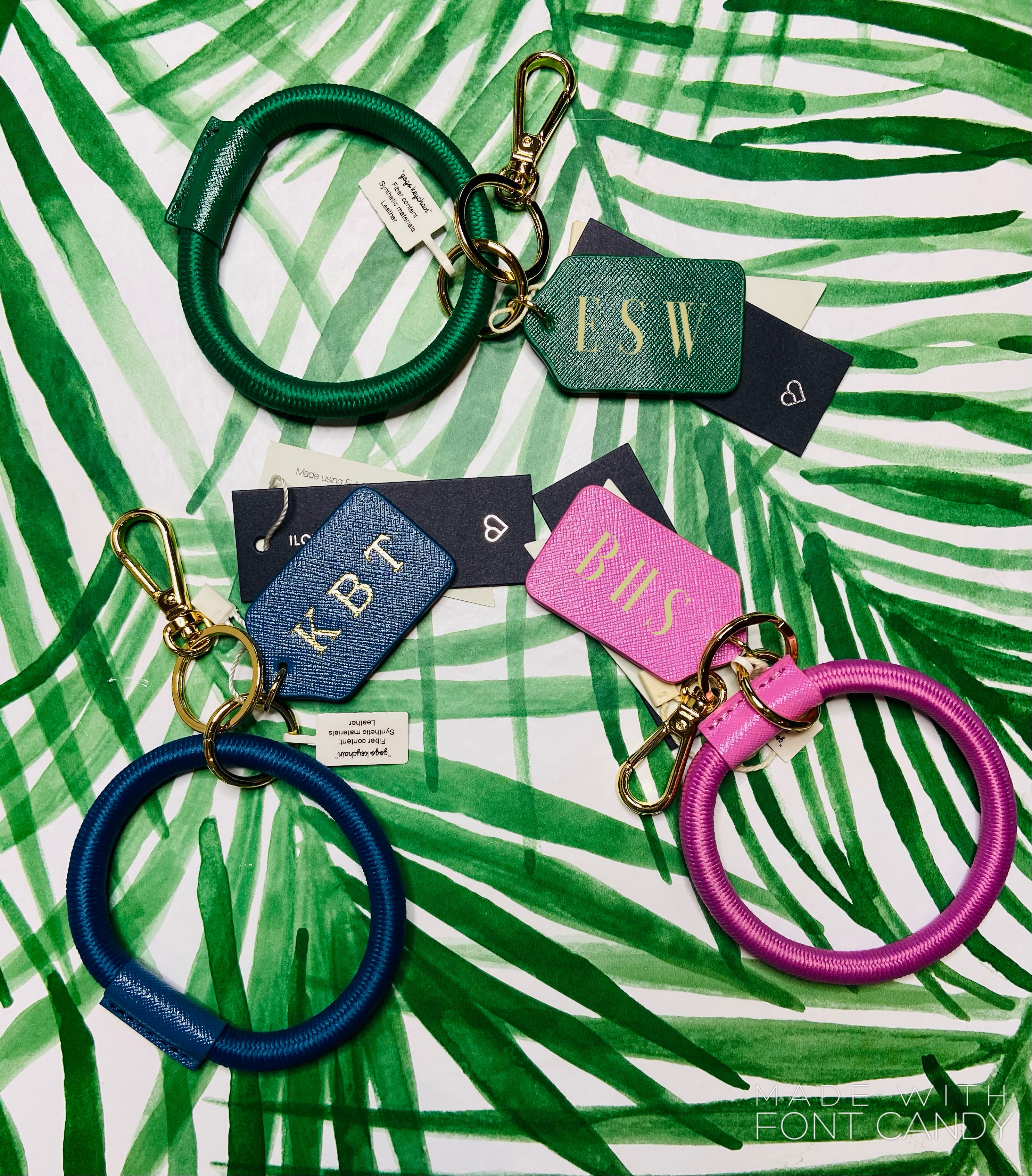 The best keychain ever. On your wrist when you need it the most! available in 3 jewel tone colors with gold stamp initials. Specify initials: First Middle Last