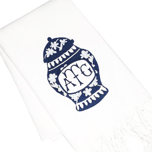 White Turkish Hand Towel with Ginger Jar