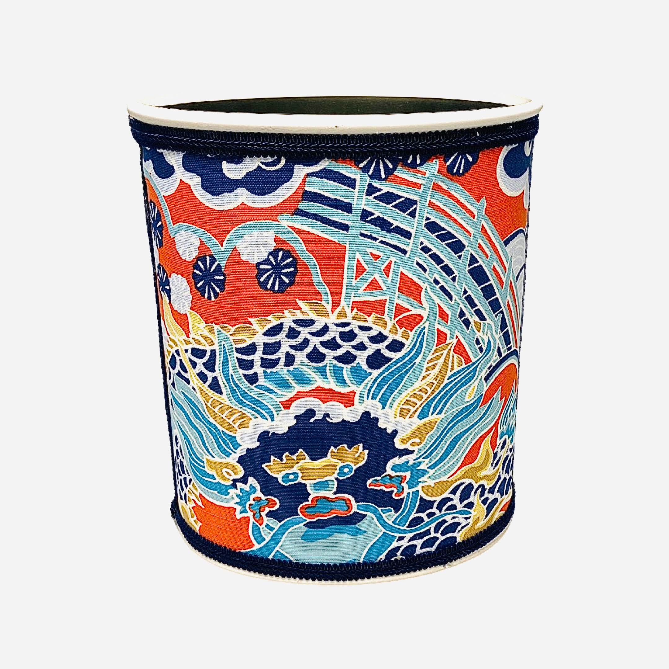 Orange & Blue Imperial Dragon (Thibaut) Fabric Wastebasket