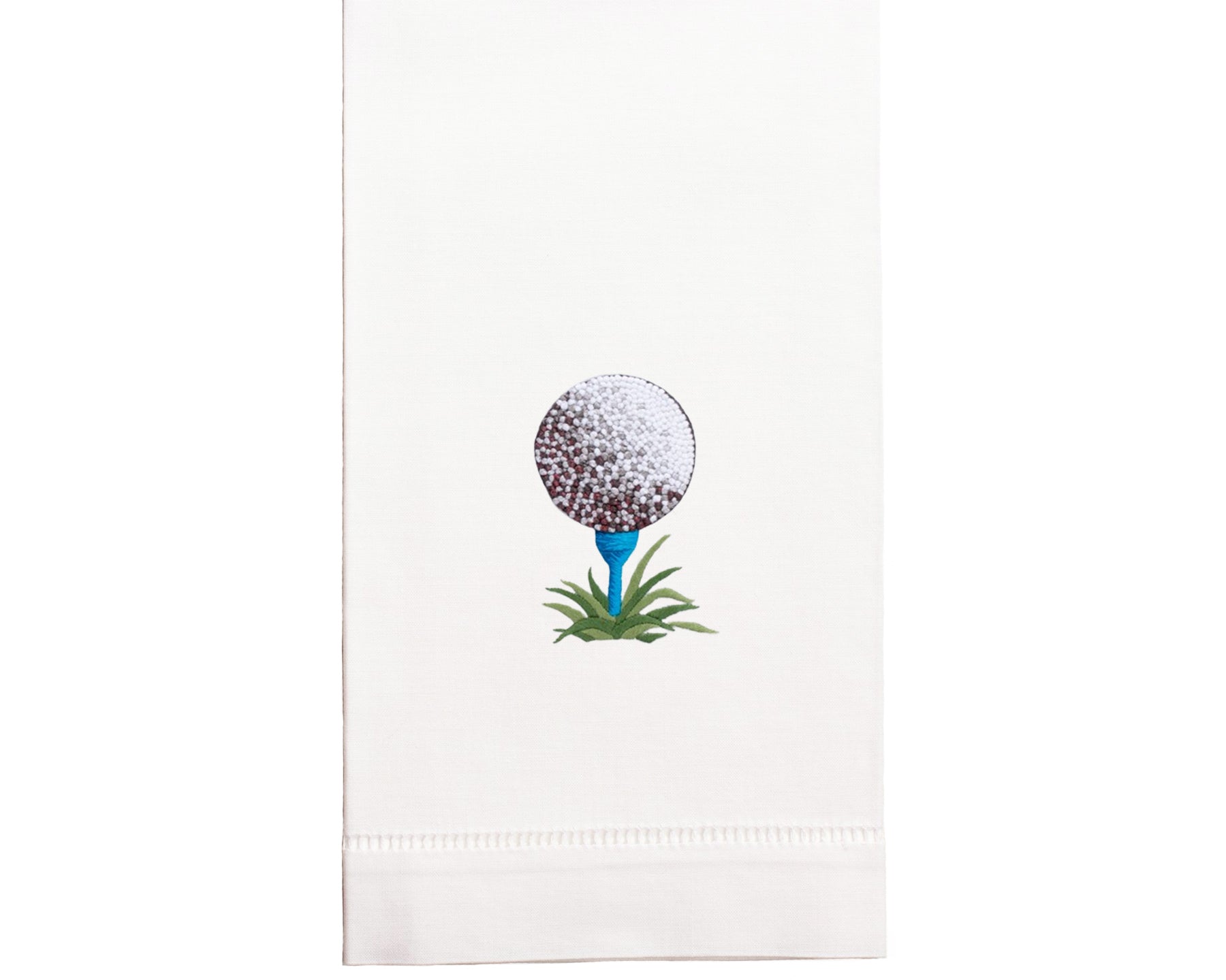 Beautiful 100% cotton towel hand embroidered with golf ball and tee.